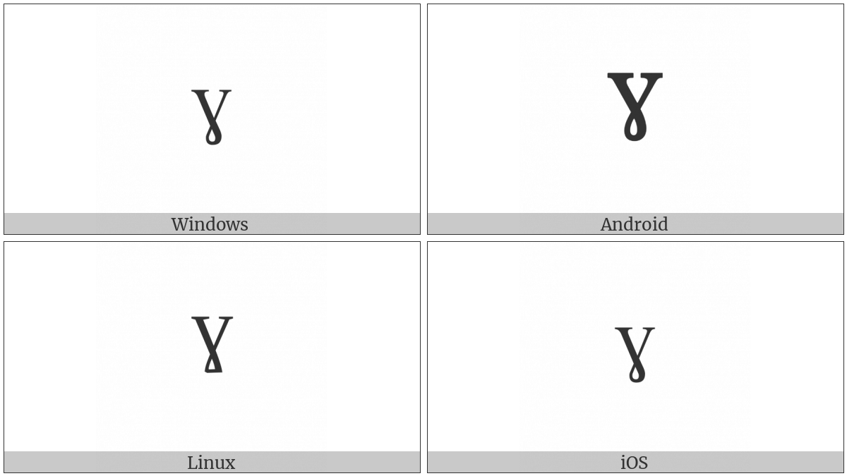 The image below shows how the “Modifier Letter Small Gamma” symbol might look like on different operating systems. If the font in which this web site is displayed does not contain the symbol and there is no fallback font able to render it, you can use the image below to get an idea of what it should look like.