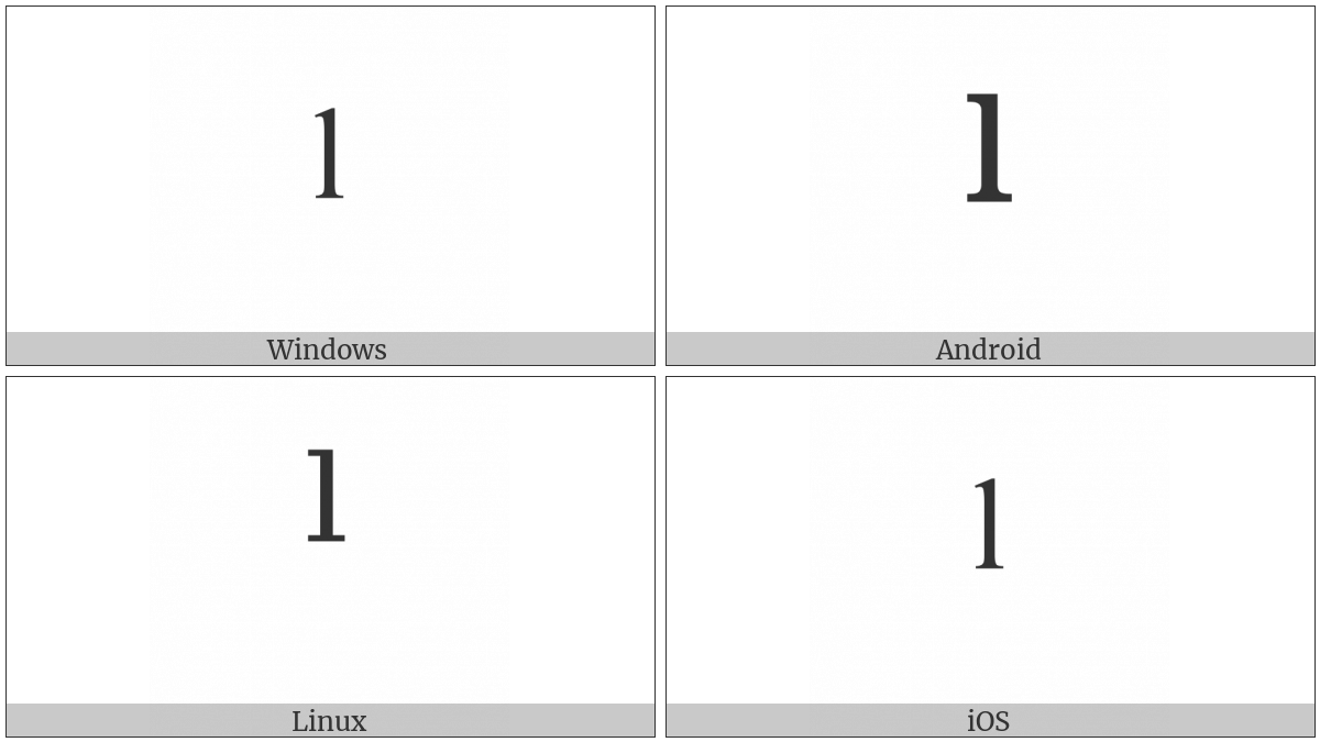 The image below shows how the “Modifier Letter Small L” symbol might look like on different operating systems. If the font in which this web site is displayed does not contain the symbol and there is no fallback font able to render it, you can use the image below to get an idea of what it should look like.