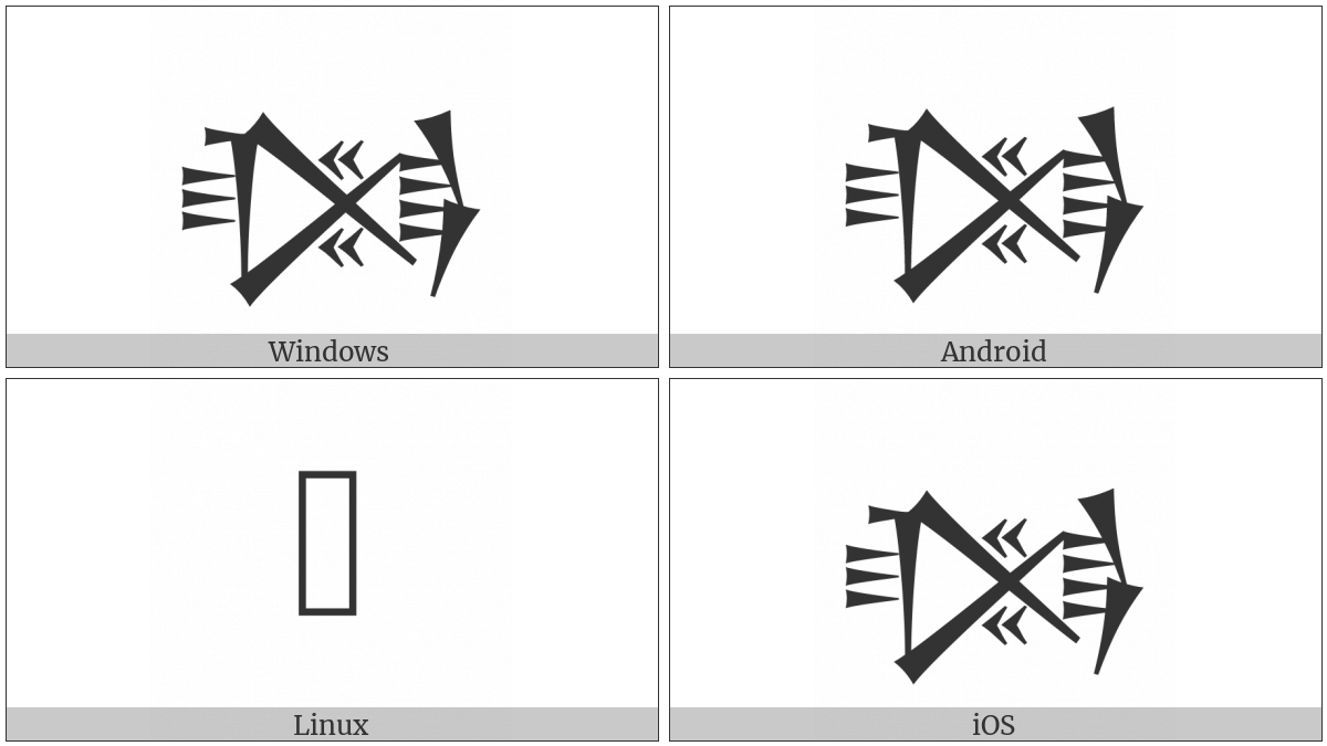 The image below shows how the “Cuneiform Sign Balag” symbol might look like on different operating systems. If the font in which this web site is displayed does not contain the symbol and there is no fallback font able to render it, you can use the image below to get an idea of what it should look like.