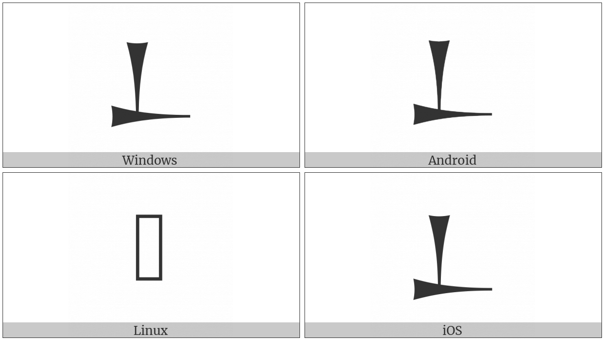 The image below shows how the “Cuneiform Sign Bar” symbol might look like on different operating systems. If the font in which this web site is displayed does not contain the symbol and there is no fallback font able to render it, you can use the image below to get an idea of what it should look like.