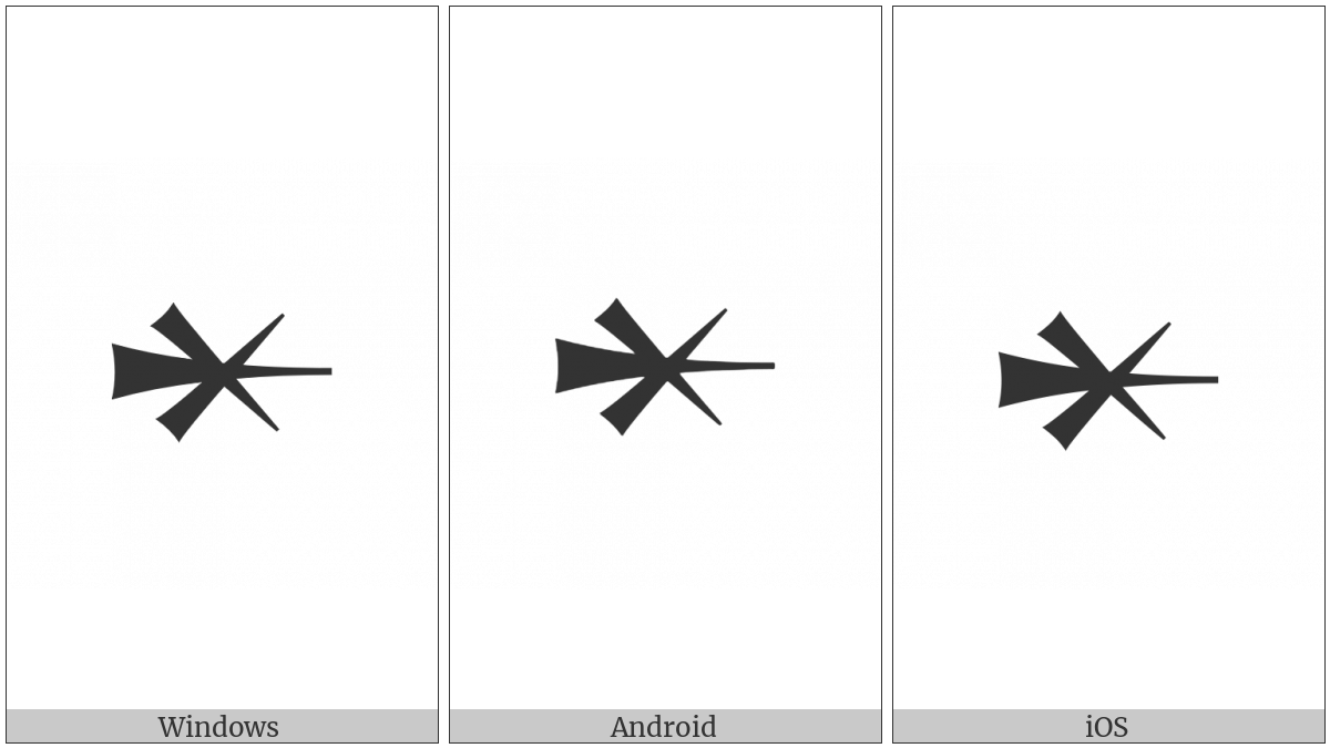 The image below shows how the “Cuneiform Sign Hal” symbol might look like on different operating systems. If the font in which this web site is displayed does not contain the symbol and there is no fallback font able to render it, you can use the image below to get an idea of what it should look like.