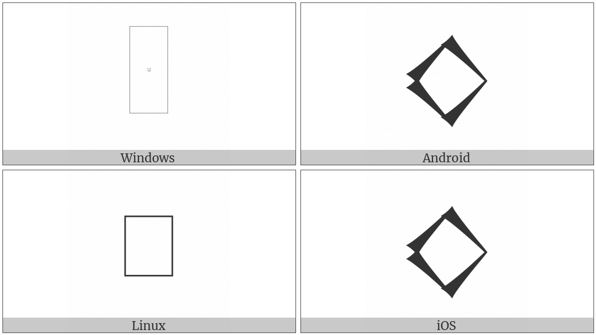 The image below shows how the “Cuneiform Sign Hi” symbol might look like on different operating systems. If the font in which this web site is displayed does not contain the symbol and there is no fallback font able to render it, you can use the image below to get an idea of what it should look like.