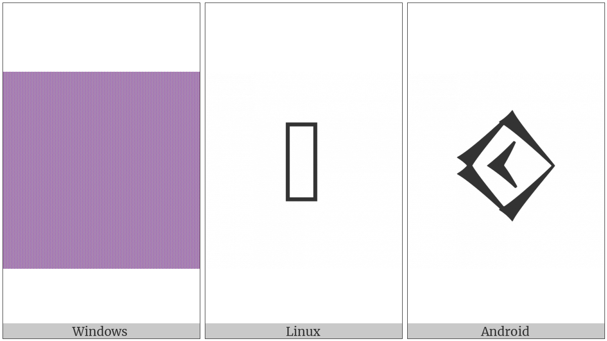 The image below shows how the “Cuneiform Sign Hi Times U” symbol might look like on different operating systems. If the font in which this web site is displayed does not contain the symbol and there is no fallback font able to render it, you can use the image below to get an idea of what it should look like.