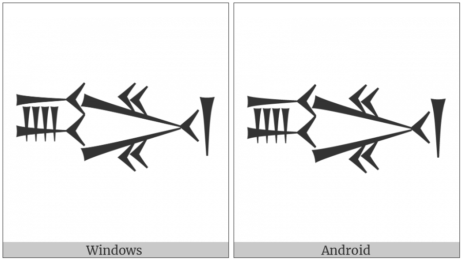 The image below shows how the “Cuneiform Sign Il” symbol might look like on different operating systems. If the font in which this web site is displayed does not contain the symbol and there is no fallback font able to render it, you can use the image below to get an idea of what it should look like.
