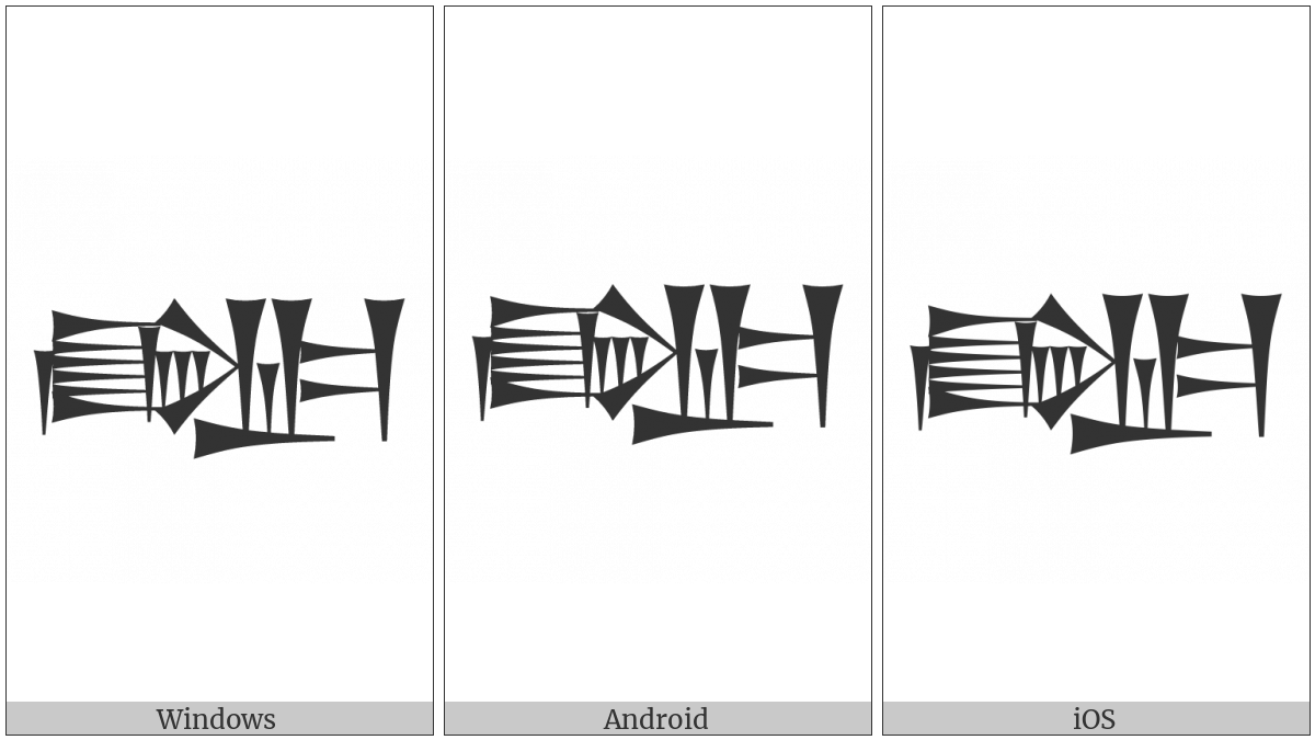 The image below shows how the “Cuneiform Sign Il2” symbol might look like on different operating systems. If the font in which this web site is displayed does not contain the symbol and there is no fallback font able to render it, you can use the image below to get an idea of what it should look like.