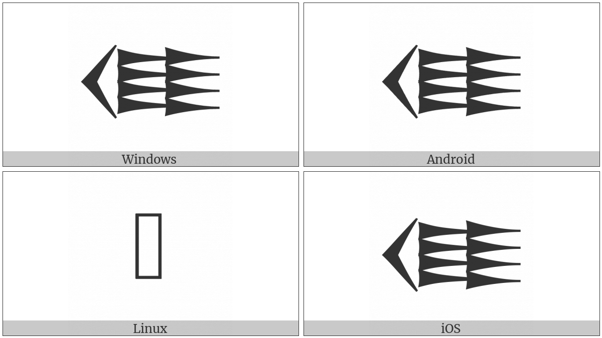 The image below shows how the “Cuneiform Sign Mi” symbol might look like on different operating systems. If the font in which this web site is displayed does not contain the symbol and there is no fallback font able to render it, you can use the image below to get an idea of what it should look like.