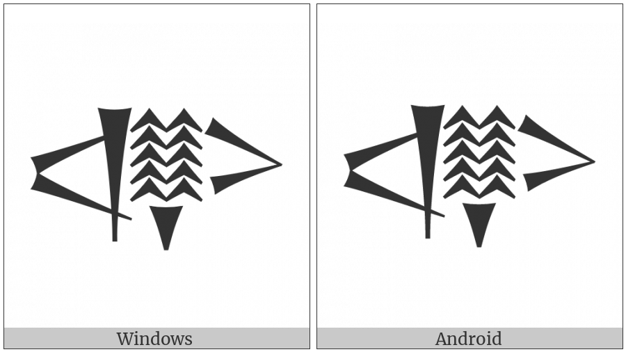 The image below shows how the “Cuneiform Sign Shinig” symbol might look like on different operating systems. If the font in which this web site is displayed does not contain the symbol and there is no fallback font able to render it, you can use the image below to get an idea of what it should look like.