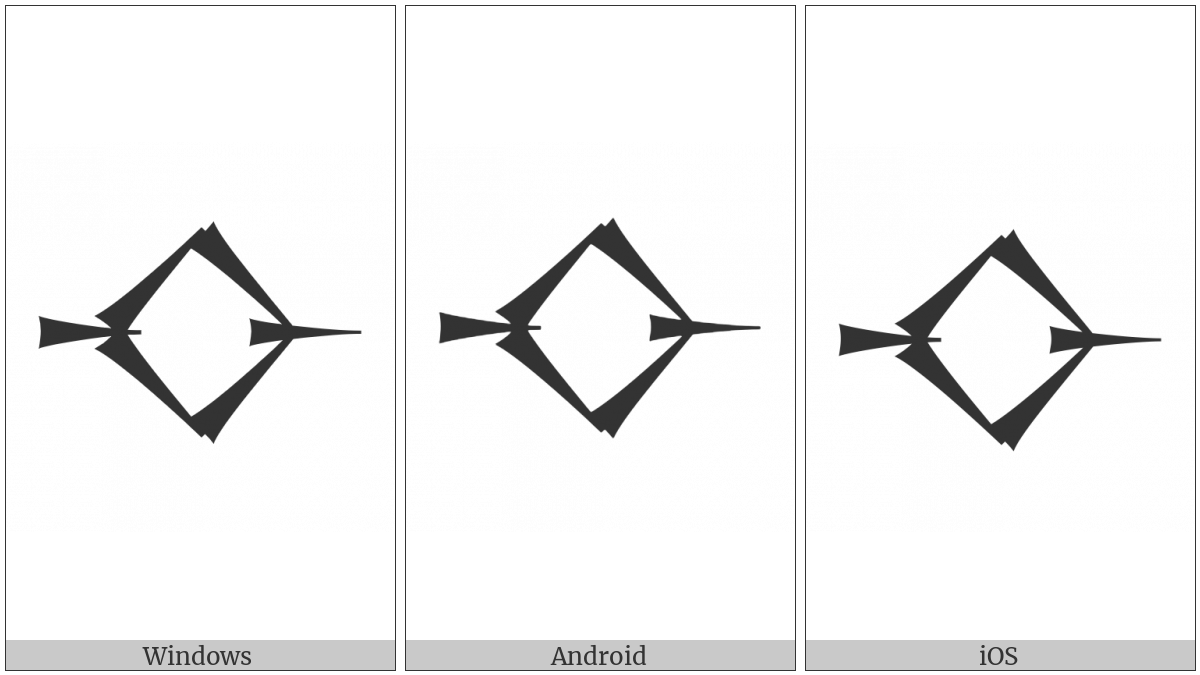 The image below shows how the “Cuneiform Sign Shir” symbol might look like on different operating systems. If the font in which this web site is displayed does not contain the symbol and there is no fallback font able to render it, you can use the image below to get an idea of what it should look like.