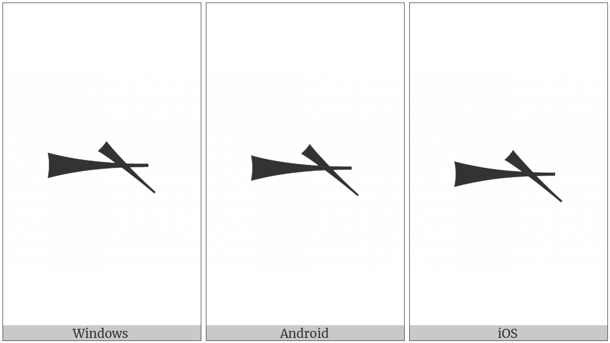 The image below shows how the “Cuneiform Sign Til” symbol might look like on different operating systems. If the font in which this web site is displayed does not contain the symbol and there is no fallback font able to render it, you can use the image below to get an idea of what it should look like.