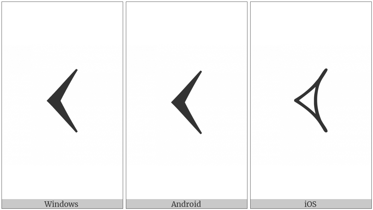 The image below shows how the “Cuneiform Sign U” symbol might look like on different operating systems. If the font in which this web site is displayed does not contain the symbol and there is no fallback font able to render it, you can use the image below to get an idea of what it should look like.