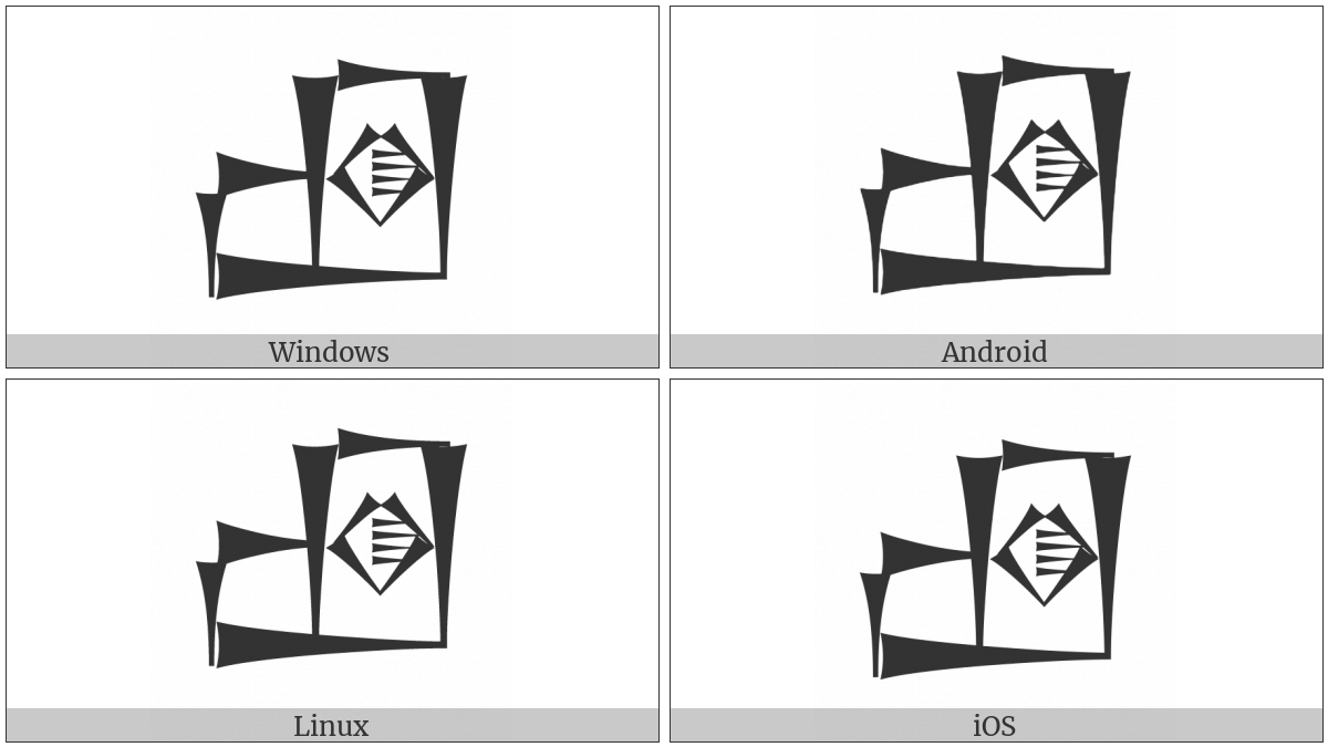 The image below shows how the “Cuneiform Sign Uru Times Ki” symbol might look like on different operating systems. If the font in which this web site is displayed does not contain the symbol and there is no fallback font able to render it, you can use the image below to get an idea of what it should look like.