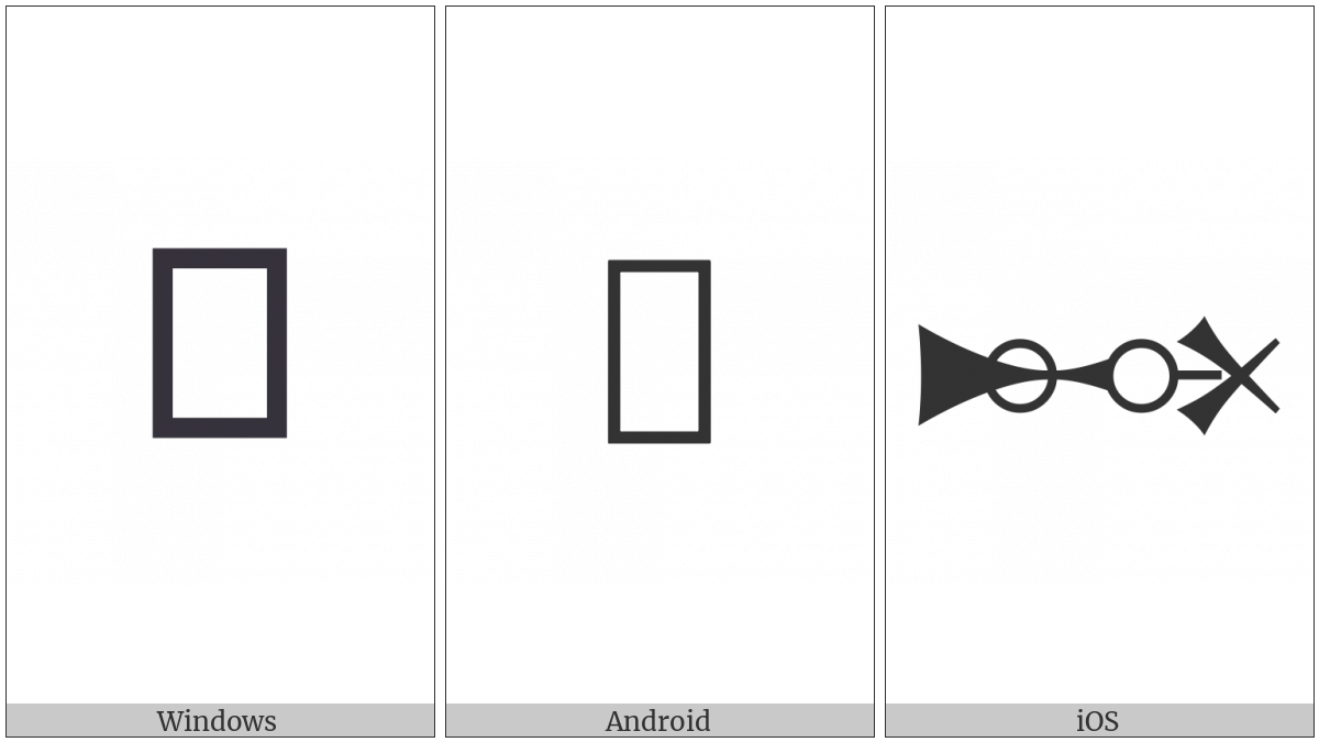 The image below shows how the “Cuneiform Sign Lak-021” symbol might look like on different operating systems. If the font in which this web site is displayed does not contain the symbol and there is no fallback font able to render it, you can use the image below to get an idea of what it should look like.