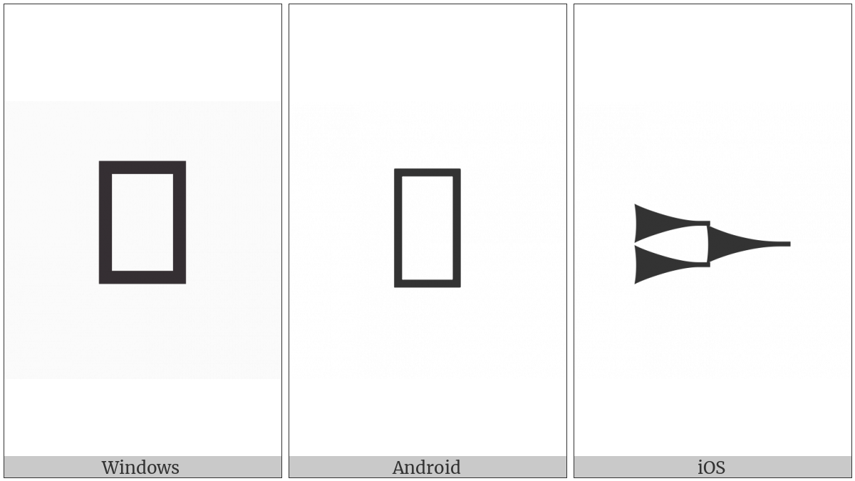 The image below shows how the “Cuneiform Sign Lak-092” symbol might look like on different operating systems. If the font in which this web site is displayed does not contain the symbol and there is no fallback font able to render it, you can use the image below to get an idea of what it should look like.