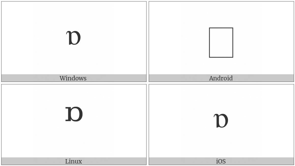 The image below shows how the “Modifier Letter Small Turned Alpha” symbol might look like on different operating systems. If the font in which this web site is displayed does not contain the symbol and there is no fallback font able to render it, you can use the image below to get an idea of what it should look like.