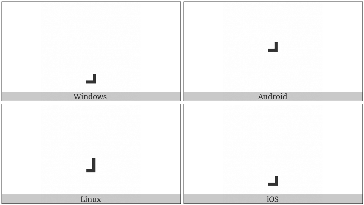 The image below shows how the “Modifier Letter End Low Tone” symbol might look like on different operating systems. If the font in which this web site is displayed does not contain the symbol and there is no fallback font able to render it, you can use the image below to get an idea of what it should look like.