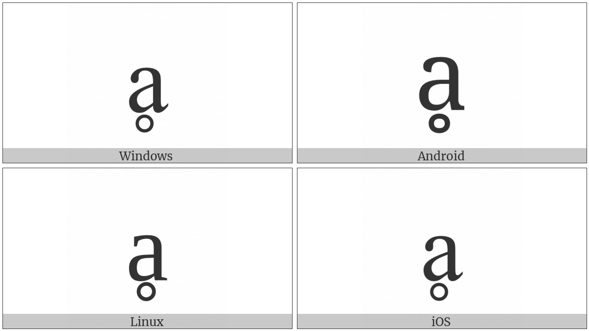 The image below shows how the “Latin Small Letter A With Ring Below” symbol might look like on different operating systems. If the font in which this web site is displayed does not contain the symbol and there is no fallback font able to render it, you can use the image below to get an idea of what it should look like.