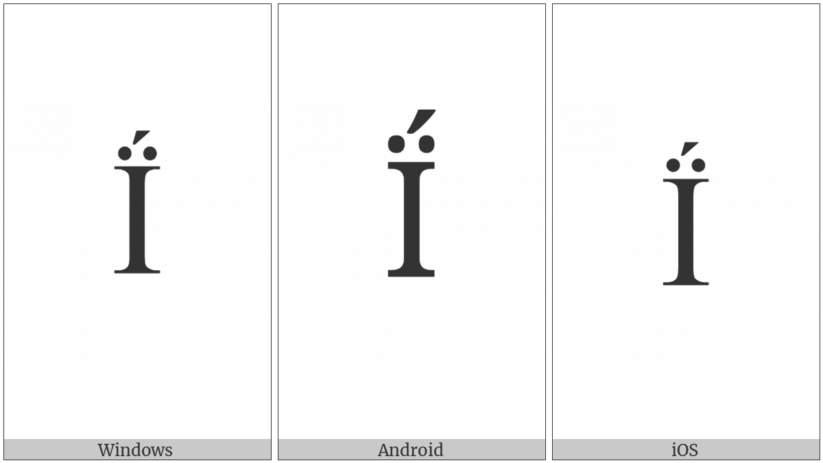 The image below shows how the “Latin Capital Letter I With Diaeresis And Acute” symbol might look like on different operating systems. If the font in which this web site is displayed does not contain the symbol and there is no fallback font able to render it, you can use the image below to get an idea of what it should look like.