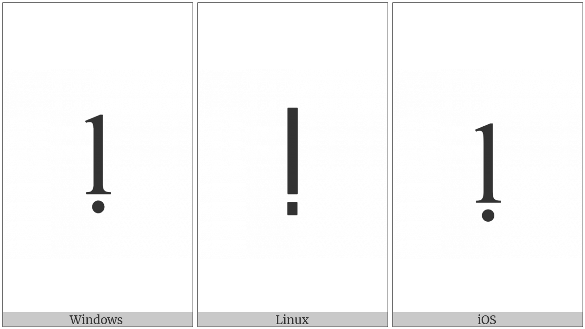 The image below shows how the “Latin Small Letter L With Dot Below” symbol might look like on different operating systems. If the font in which this web site is displayed does not contain the symbol and there is no fallback font able to render it, you can use the image below to get an idea of what it should look like.