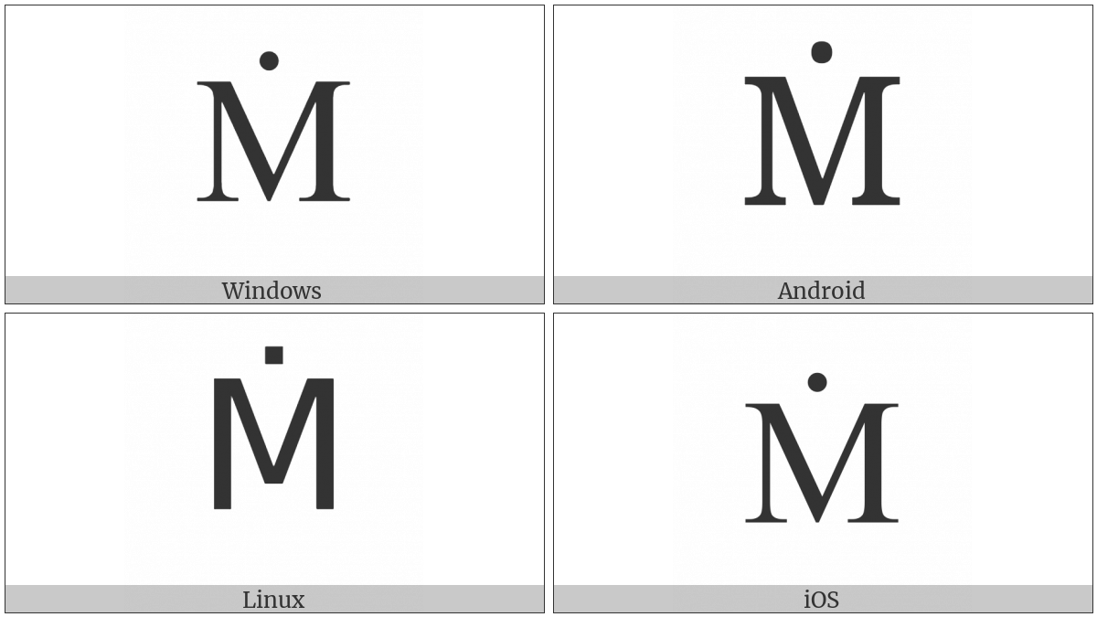 “Latin Capital Letter M With Dot Above” on various operating systems