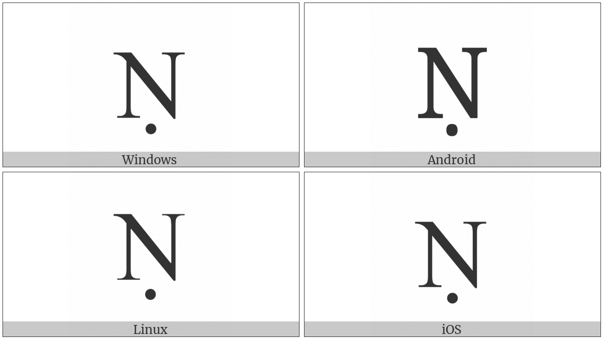 “Latin Capital Letter N With Dot Below” on various operating systems