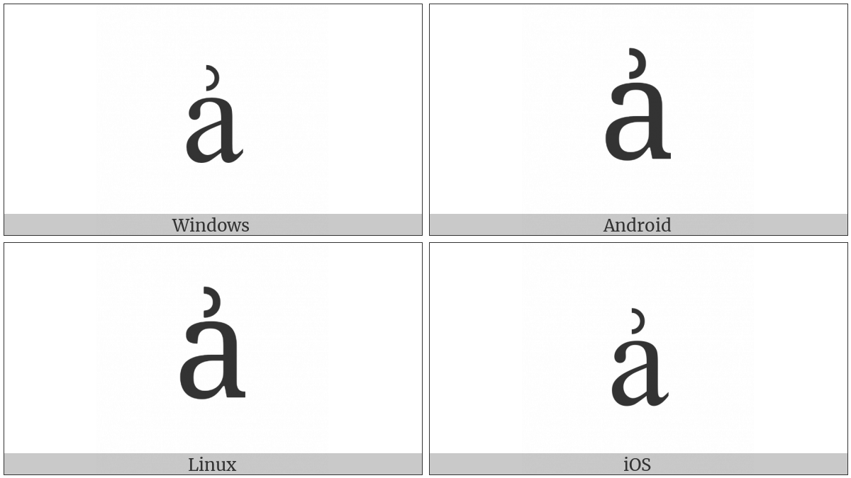 “Latin Small Letter A With Right Half Ring” on various operating systems