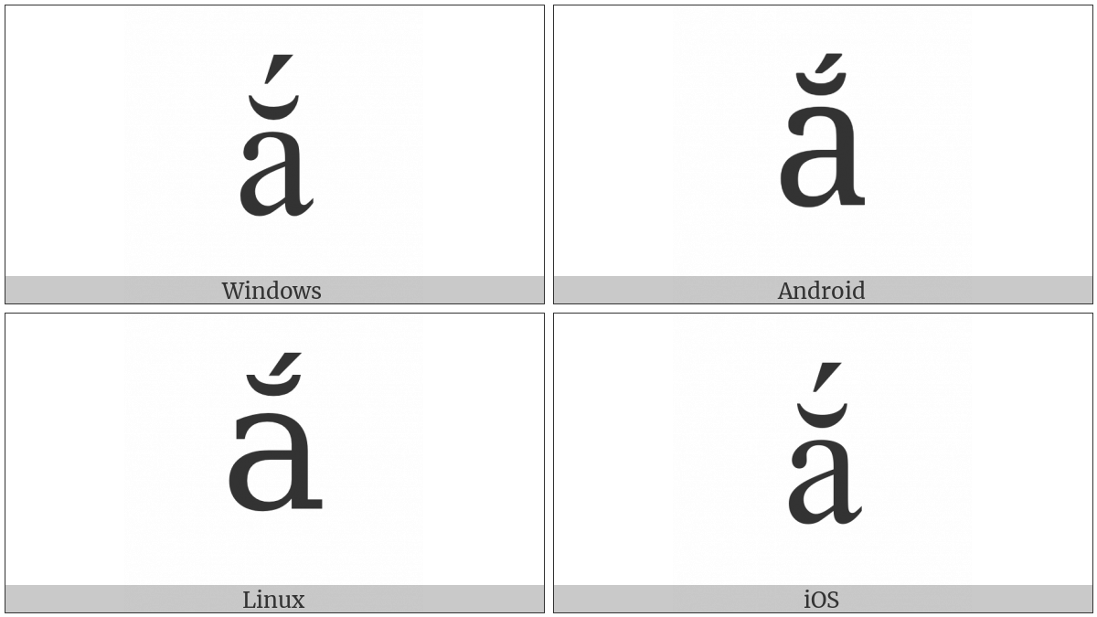 “Latin Small Letter A With Breve And Acute” on various operating systems