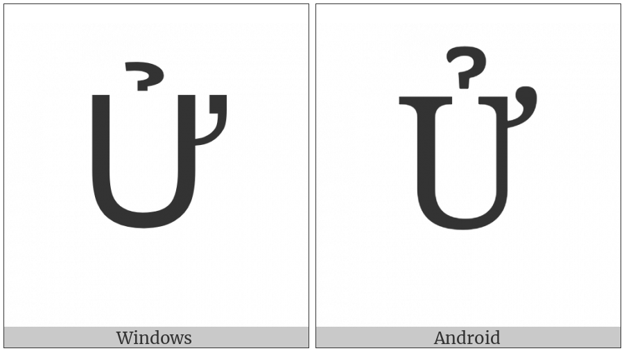 The image below shows how the “Latin Capital Letter U With Horn And Hook Above” symbol might look like on different operating systems. If the font in which this web site is displayed does not contain the symbol and there is no fallback font able to render it, you can use the image below to get an idea of what it should look like.