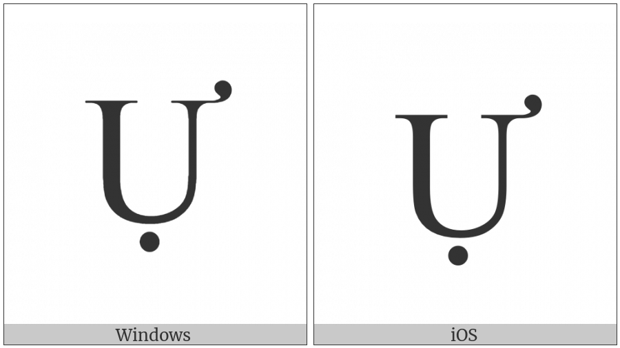 The image below shows how the “Latin Capital Letter U With Horn And Dot Below” symbol might look like on different operating systems. If the font in which this web site is displayed does not contain the symbol and there is no fallback font able to render it, you can use the image below to get an idea of what it should look like.