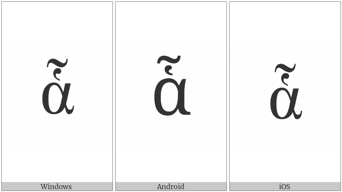 The image below shows how the “Greek Small Letter Alpha With Dasia And Perispomeni” symbol might look like on different operating systems. If the font in which this web site is displayed does not contain the symbol and there is no fallback font able to render it, you can use the image below to get an idea of what it should look like.