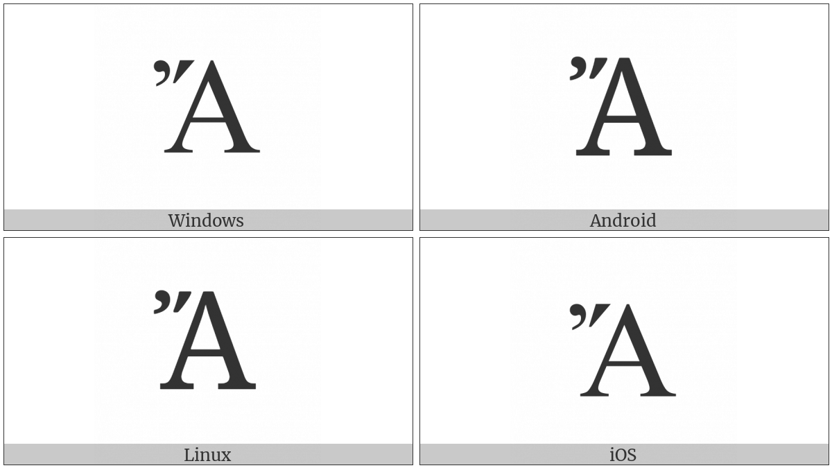 The image below shows how the “Greek Capital Letter Alpha With Psili And Oxia” symbol might look like on different operating systems. If the font in which this web site is displayed does not contain the symbol and there is no fallback font able to render it, you can use the image below to get an idea of what it should look like.