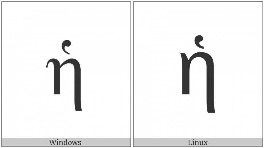 The image below shows how the “Greek Small Letter Eta With Dasia” symbol might look like on different operating systems. If the font in which this web site is displayed does not contain the symbol and there is no fallback font able to render it, you can use the image below to get an idea of what it should look like.