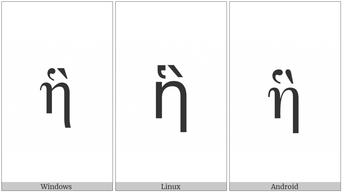 The image below shows how the “Greek Small Letter Eta With Dasia And Varia” symbol might look like on different operating systems. If the font in which this web site is displayed does not contain the symbol and there is no fallback font able to render it, you can use the image below to get an idea of what it should look like.