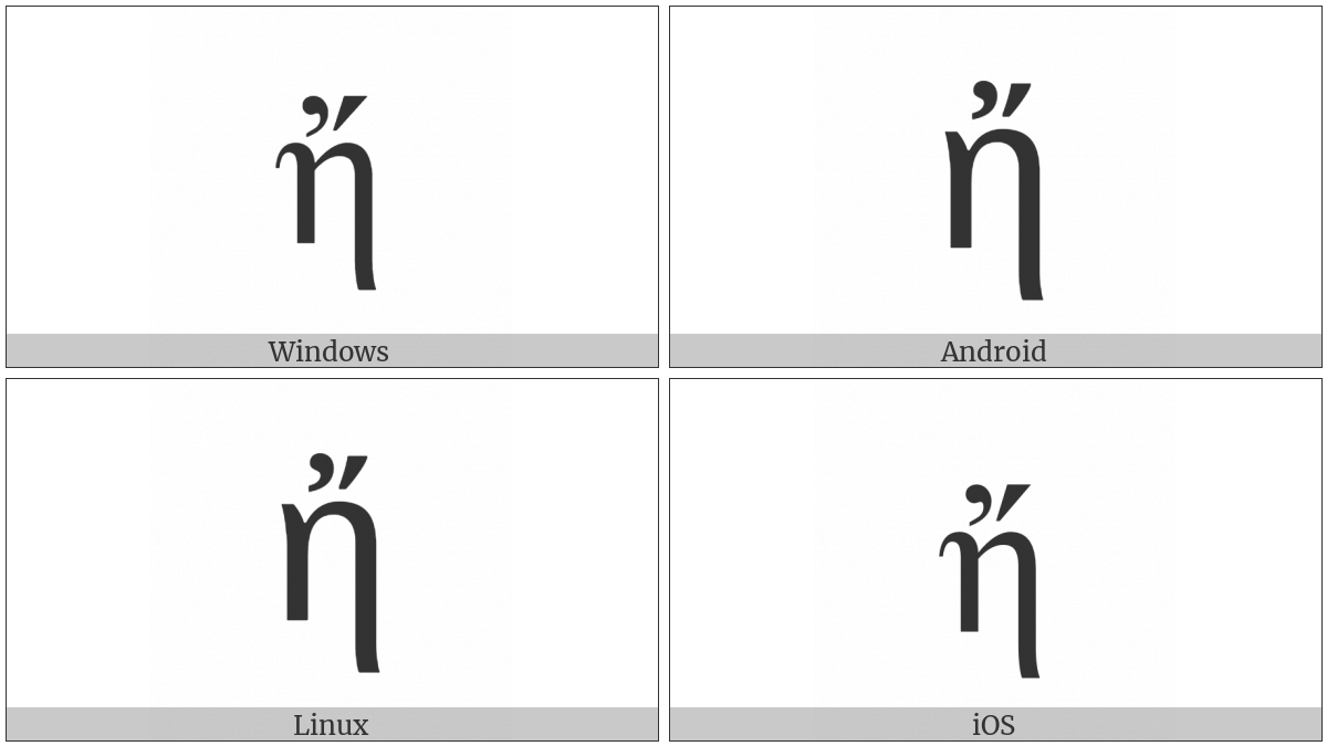 The image below shows how the “Greek Small Letter Eta With Psili And Oxia” symbol might look like on different operating systems. If the font in which this web site is displayed does not contain the symbol and there is no fallback font able to render it, you can use the image below to get an idea of what it should look like.