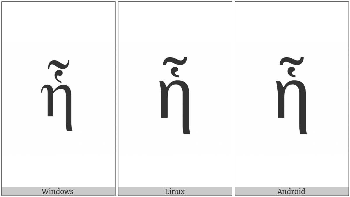 The image below shows how the “Greek Small Letter Eta With Dasia And Perispomeni” symbol might look like on different operating systems. If the font in which this web site is displayed does not contain the symbol and there is no fallback font able to render it, you can use the image below to get an idea of what it should look like.