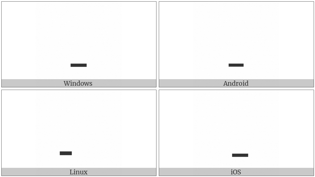 The image below shows how the “Combining Minus Sign Below” symbol might look like on different operating systems. If the font in which this web site is displayed does not contain the symbol and there is no fallback font able to render it, you can use the image below to get an idea of what it should look like.
