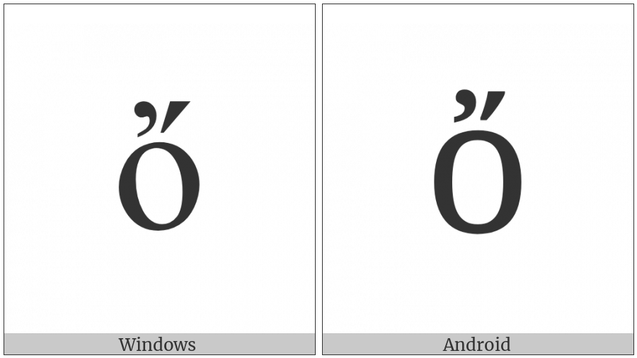 The image below shows how the “Greek Small Letter Omicron With Psili And Oxia” symbol might look like on different operating systems. If the font in which this web site is displayed does not contain the symbol and there is no fallback font able to render it, you can use the image below to get an idea of what it should look like.