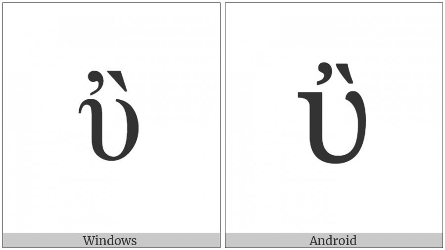 The image below shows how the “Greek Small Letter Upsilon With Psili And Varia” symbol might look like on different operating systems. If the font in which this web site is displayed does not contain the symbol and there is no fallback font able to render it, you can use the image below to get an idea of what it should look like.