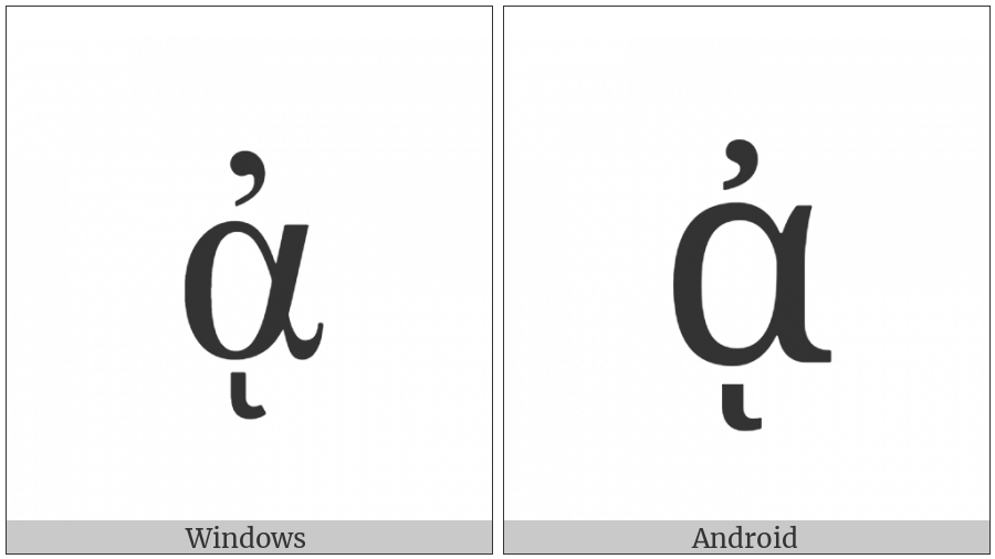 The image below shows how the “Greek Small Letter Alpha With Psili And Ypogegrammeni” symbol might look like on different operating systems. If the font in which this web site is displayed does not contain the symbol and there is no fallback font able to render it, you can use the image below to get an idea of what it should look like.