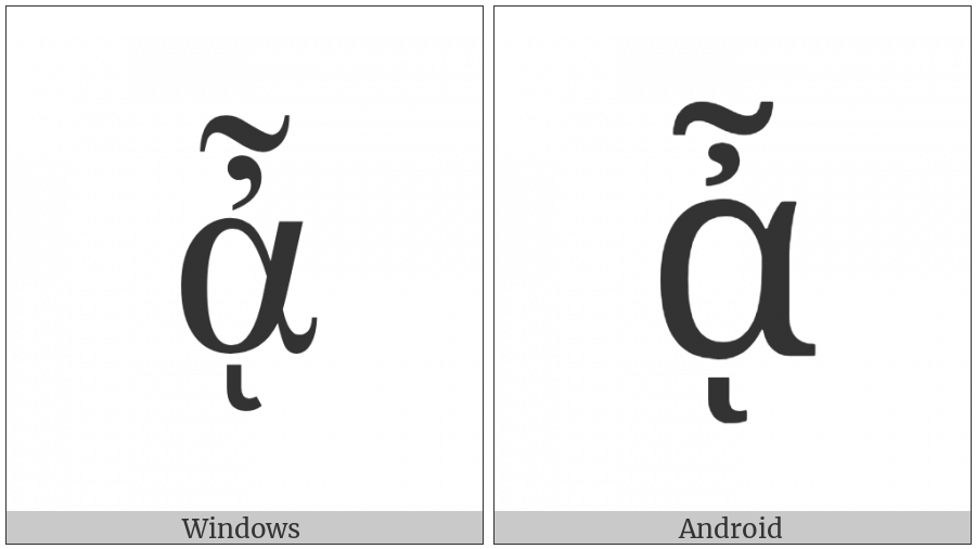 The image below shows how the “Greek Small Letter Alpha With Psili And Perispomeni And Ypogegrammeni” symbol might look like on different operating systems. If the font in which this web site is displayed does not contain the symbol and there is no fallback font able to render it, you can use the image below to get an idea of what it should look like.