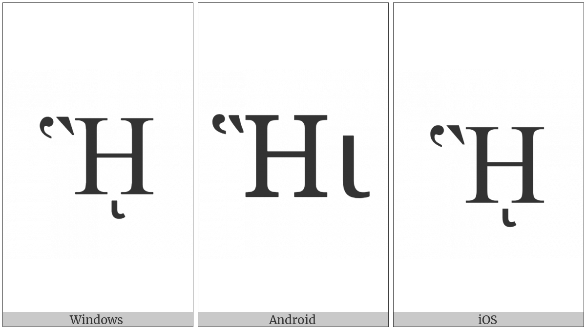 The image below shows how the “Greek Capital Letter Eta With Dasia And Varia And Prosgegrammeni” symbol might look like on different operating systems. If the font in which this web site is displayed does not contain the symbol and there is no fallback font able to render it, you can use the image below to get an idea of what it should look like.