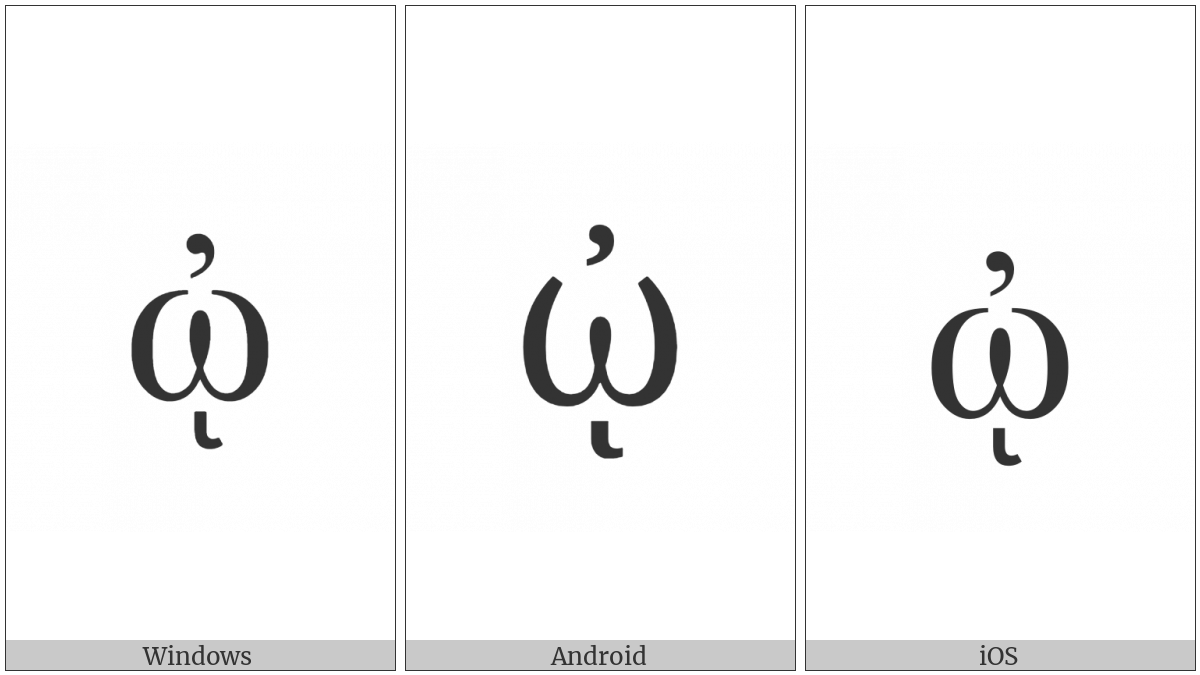 The image below shows how the “Greek Small Letter Omega With Psili And Ypogegrammeni” symbol might look like on different operating systems. If the font in which this web site is displayed does not contain the symbol and there is no fallback font able to render it, you can use the image below to get an idea of what it should look like.