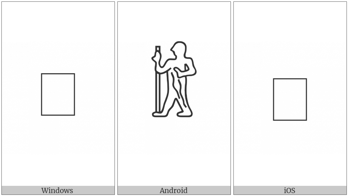 The image below shows how the “Anatolian Hieroglyph A003” symbol might look like on different operating systems. If the font in which this web site is displayed does not contain the symbol and there is no fallback font able to render it, you can use the image below to get an idea of what it should look like.