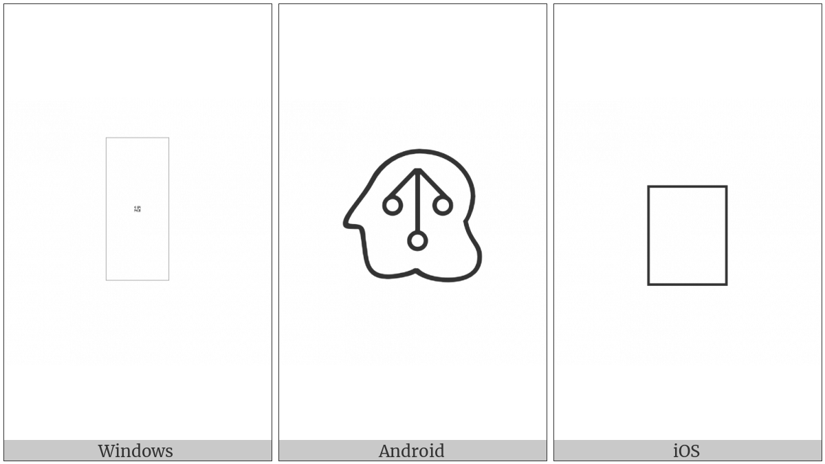 The image below shows how the “Anatolian Hieroglyph A010A” symbol might look like on different operating systems. If the font in which this web site is displayed does not contain the symbol and there is no fallback font able to render it, you can use the image below to get an idea of what it should look like.