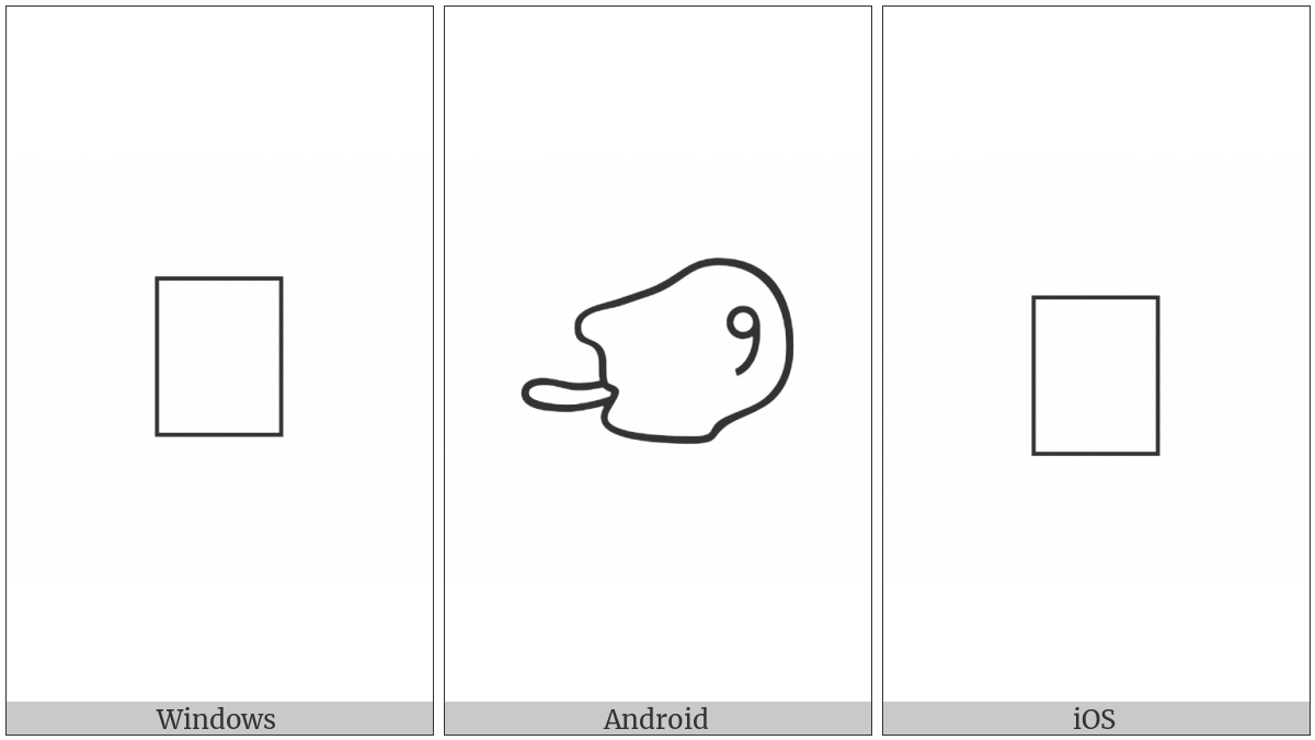The image below shows how the “Anatolian Hieroglyph A013” symbol might look like on different operating systems. If the font in which this web site is displayed does not contain the symbol and there is no fallback font able to render it, you can use the image below to get an idea of what it should look like.