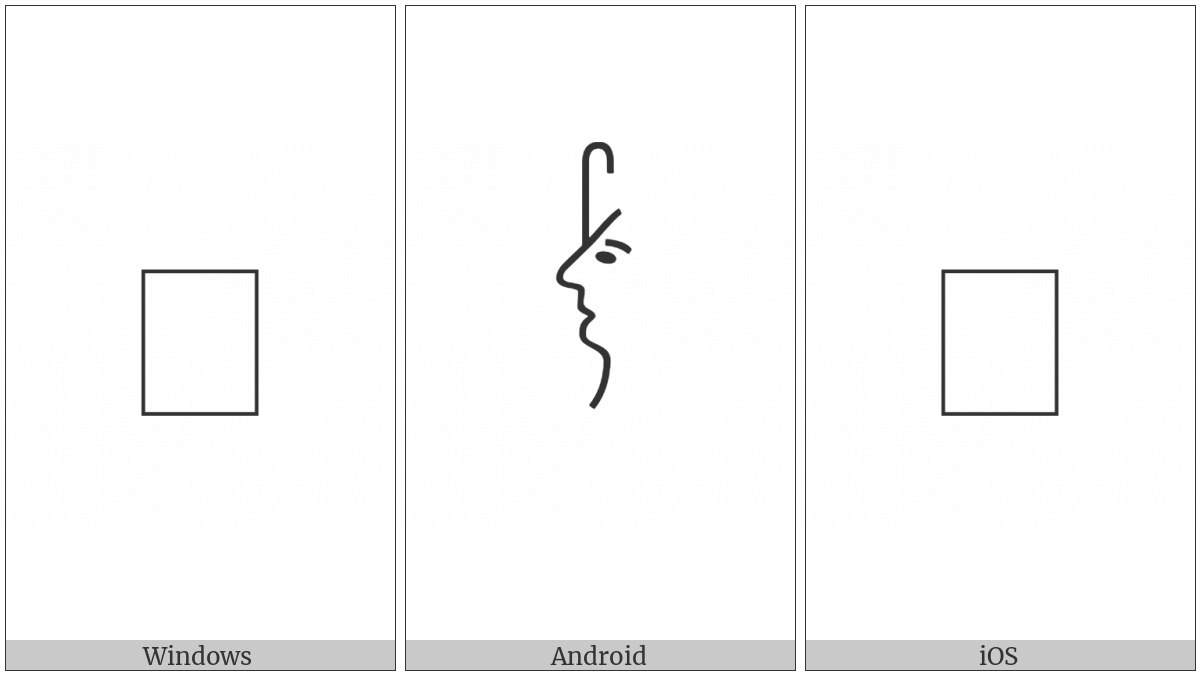 The image below shows how the “Anatolian Hieroglyph A020” symbol might look like on different operating systems. If the font in which this web site is displayed does not contain the symbol and there is no fallback font able to render it, you can use the image below to get an idea of what it should look like.