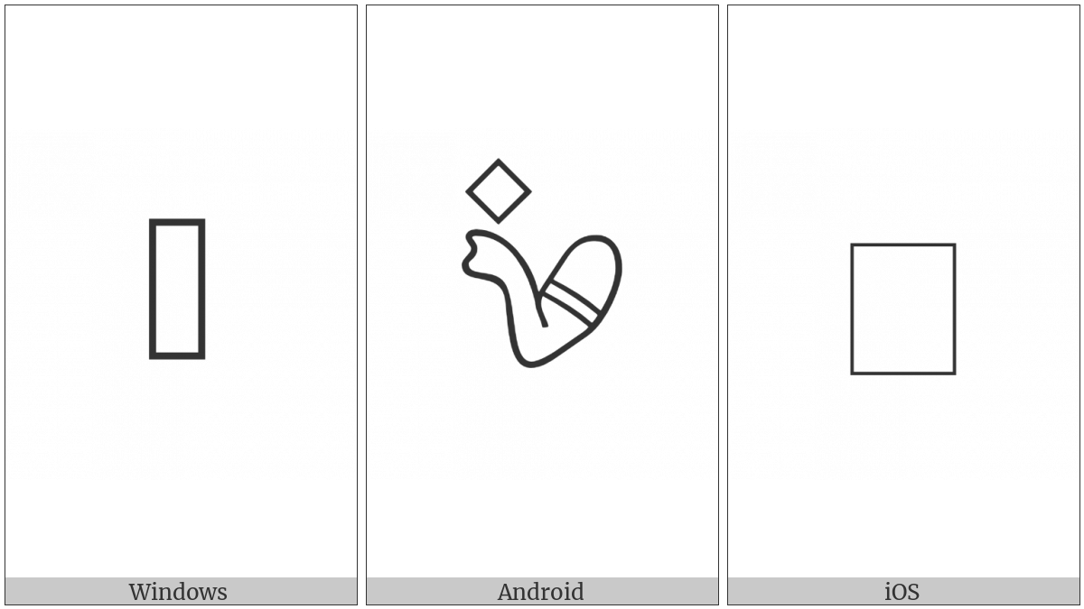 The image below shows how the “Anatolian Hieroglyph A033” symbol might look like on different operating systems. If the font in which this web site is displayed does not contain the symbol and there is no fallback font able to render it, you can use the image below to get an idea of what it should look like.