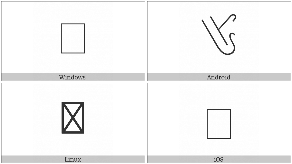 The image below shows how the “Anatolian Hieroglyph A036” symbol might look like on different operating systems. If the font in which this web site is displayed does not contain the symbol and there is no fallback font able to render it, you can use the image below to get an idea of what it should look like.