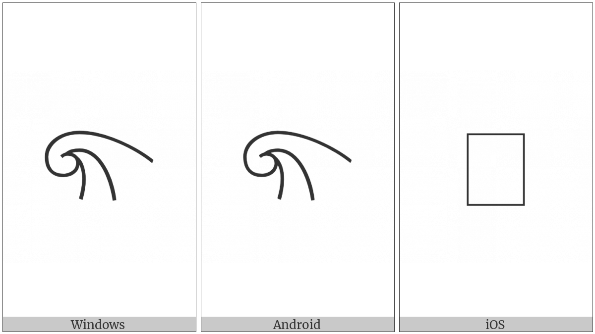 The image below shows how the “Anatolian Hieroglyph A041A” symbol might look like on different operating systems. If the font in which this web site is displayed does not contain the symbol and there is no fallback font able to render it, you can use the image below to get an idea of what it should look like.