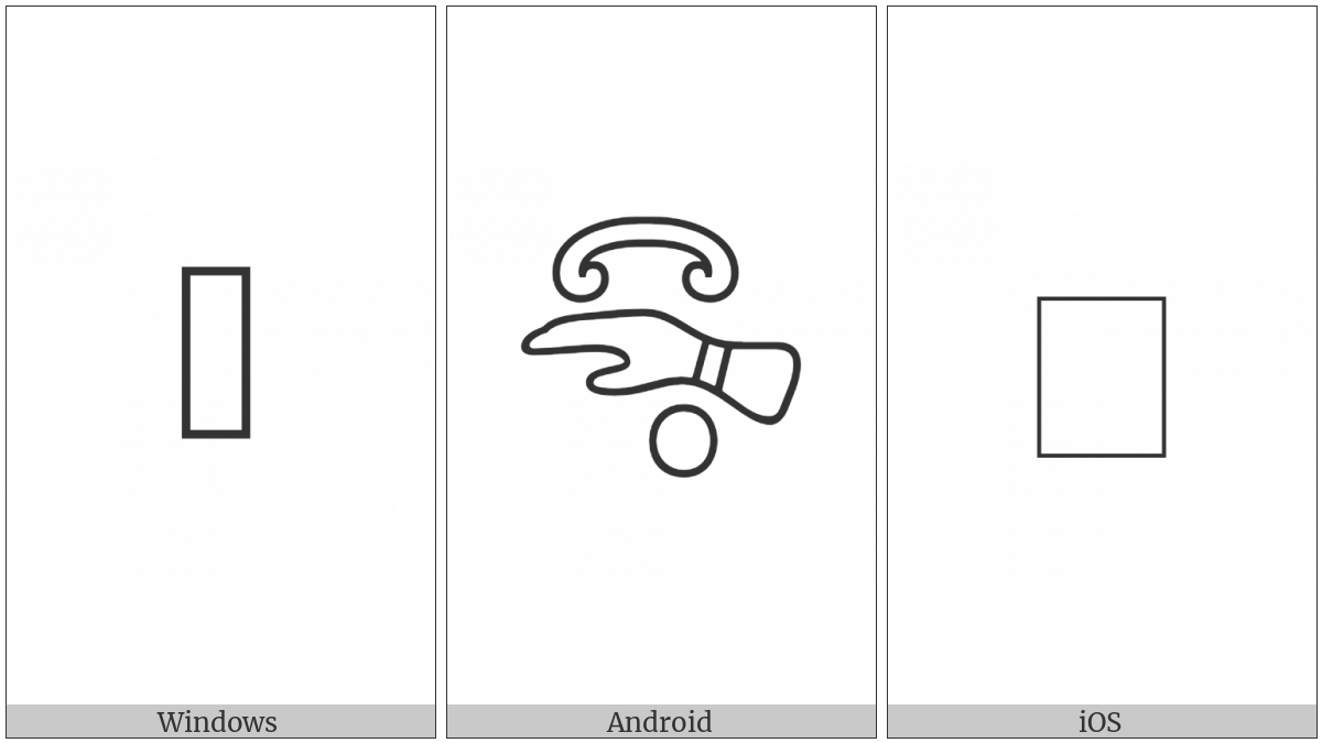 The image below shows how the “Anatolian Hieroglyph A046B” symbol might look like on different operating systems. If the font in which this web site is displayed does not contain the symbol and there is no fallback font able to render it, you can use the image below to get an idea of what it should look like.