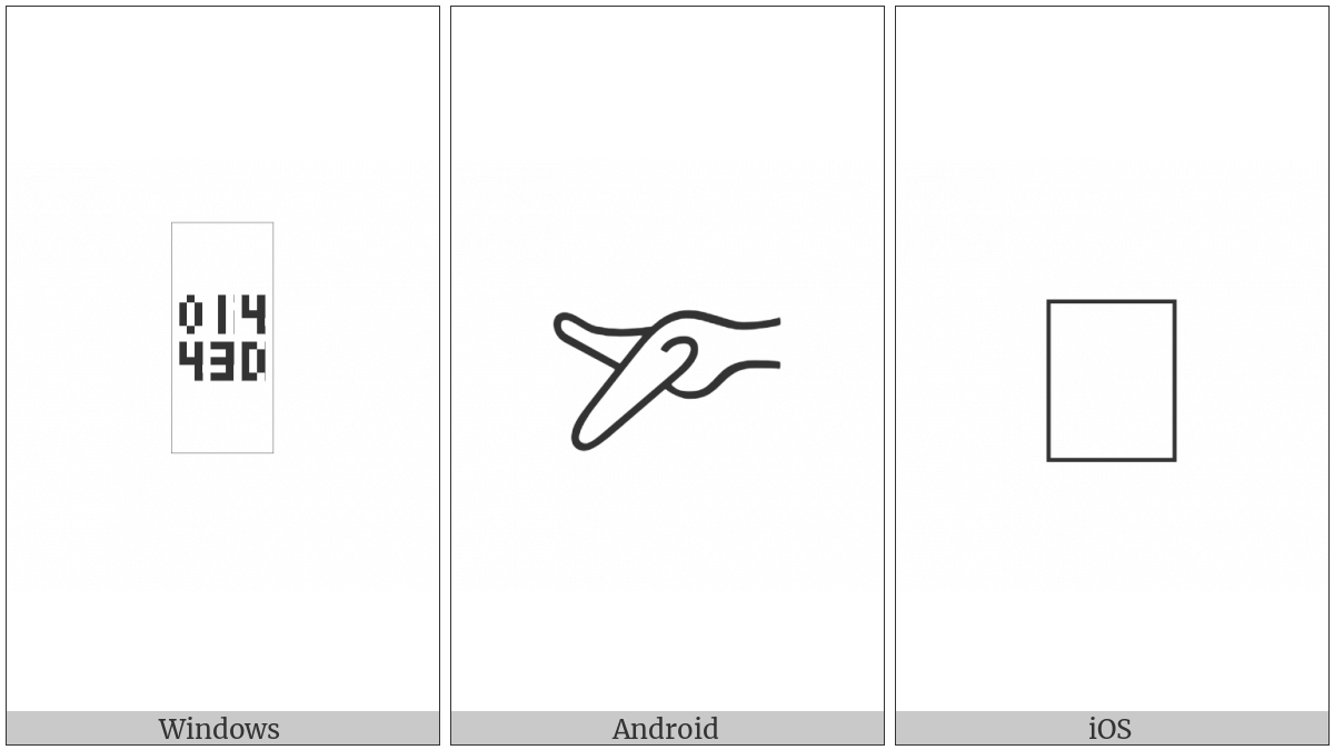 The image below shows how the “Anatolian Hieroglyph A055” symbol might look like on different operating systems. If the font in which this web site is displayed does not contain the symbol and there is no fallback font able to render it, you can use the image below to get an idea of what it should look like.